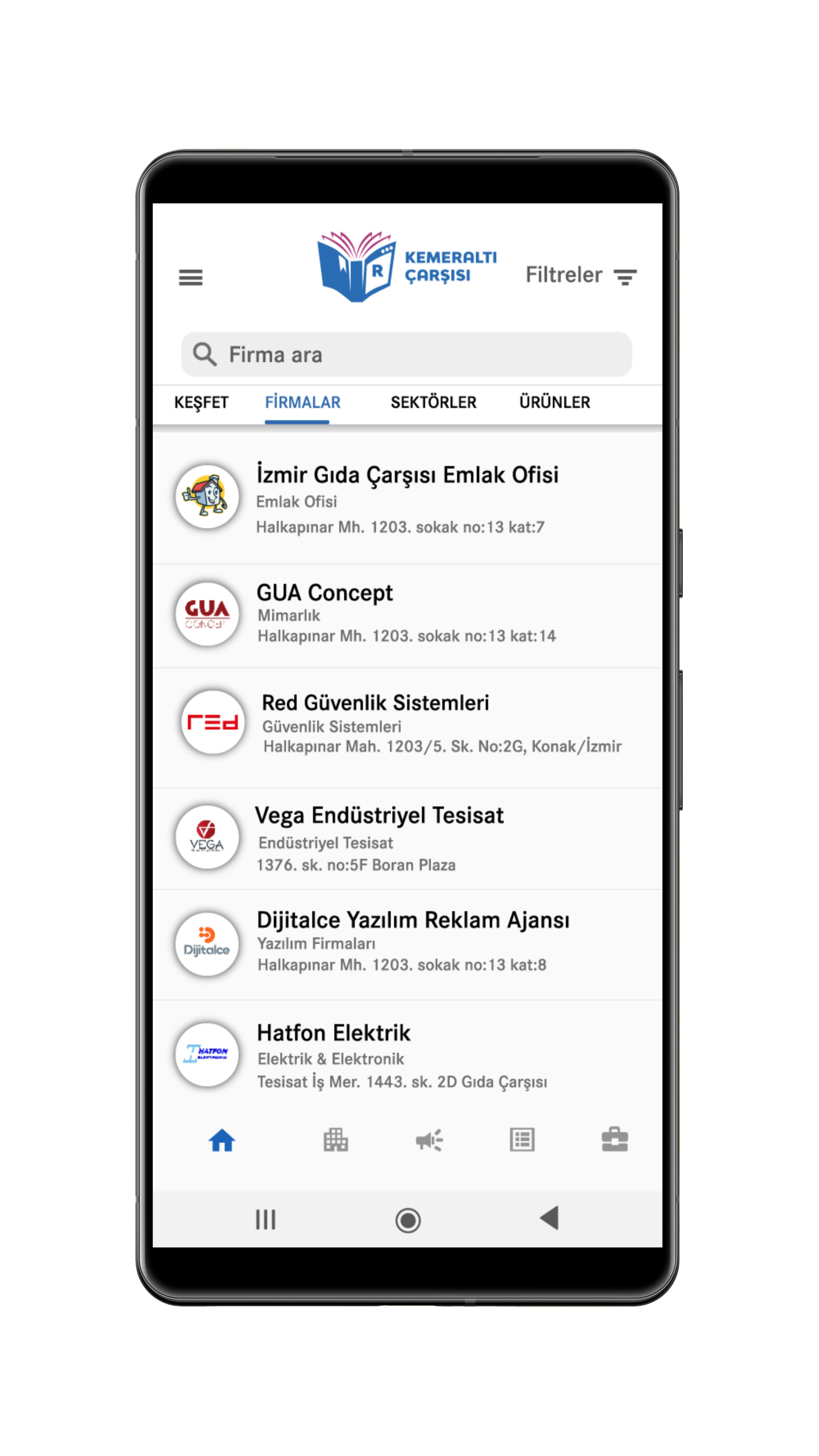 - Kemeraltı Çarşısı uygulamasında firmaların iletişim bilgilerine, ürünlerine, iş ilanlarına, kampanyalarına hemen ulaşın.