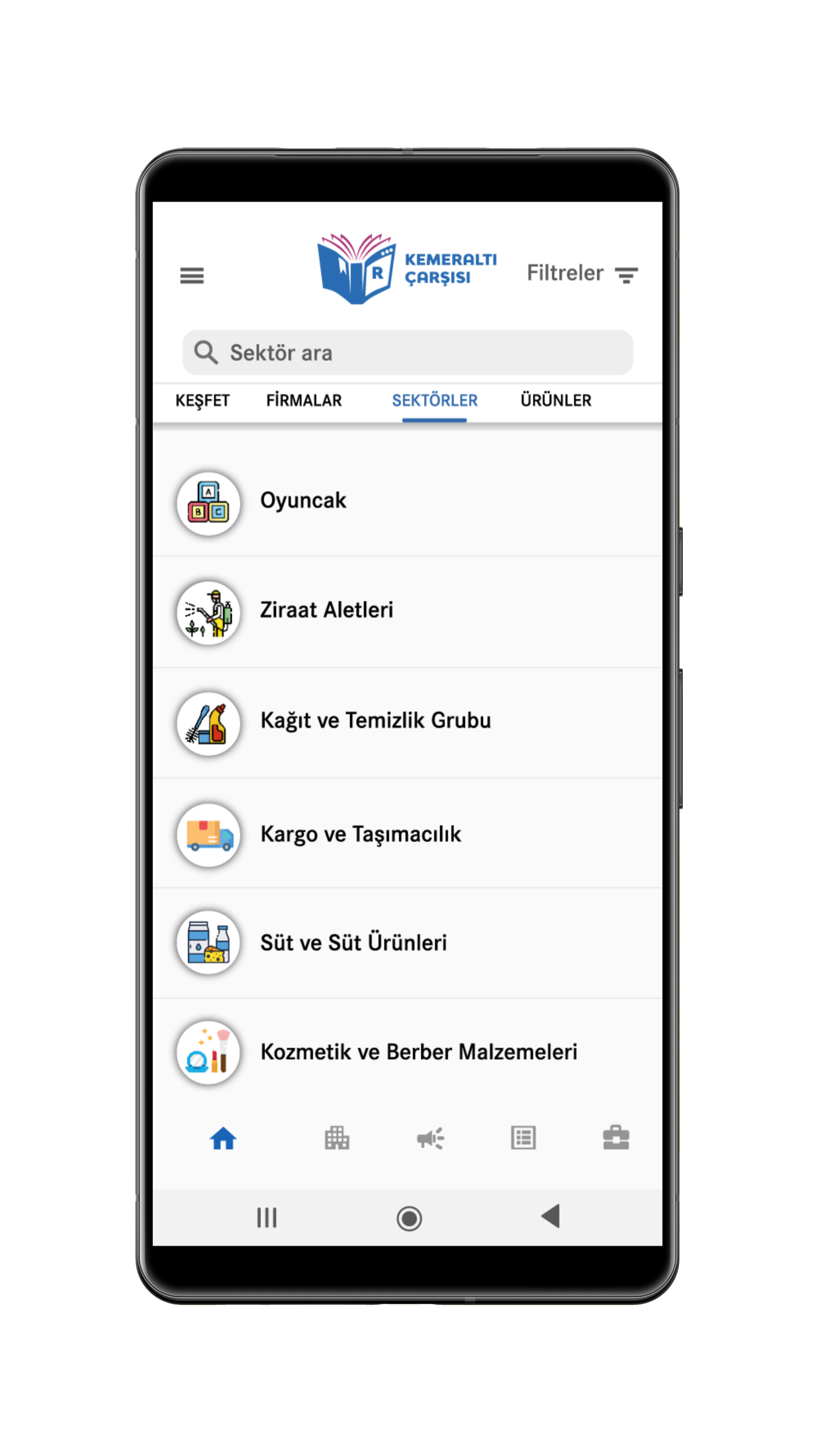 Kemeraltı Çarşısı’ında, geniş arama sistemi ile, kullanıcıların; firmalara, sektörlere, ürünlere kolaylıkla ulaşmalarını sağlamak için geliştirilmiş bir mobil uygulamadır.